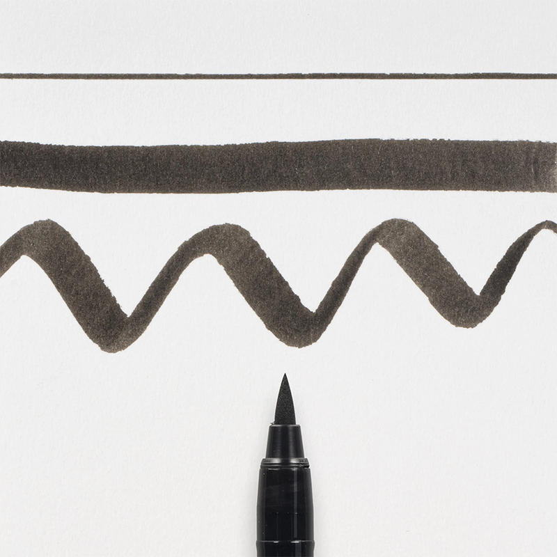 Pigma Brush Pen Fine Black má flexibilný hrot pre tenké a hrubé línie štetca. Mimoriadne odolný, trvanlivý a „pamätový“ hrot je vyrobený z pevného plastu. Odolné hroty štetiny okamžite reagujú na zmeny tlaku alebo smeru a dávajú hodvábne hladký, presný a konzistentný tok atramentu. Unikátny atrament Sakura Pigma ™ nebude prepúšťať papierom, je trvalý, vode odolný, odolný voči vyblednutiu, rýchlo schnúci a neutrálny voči pH.